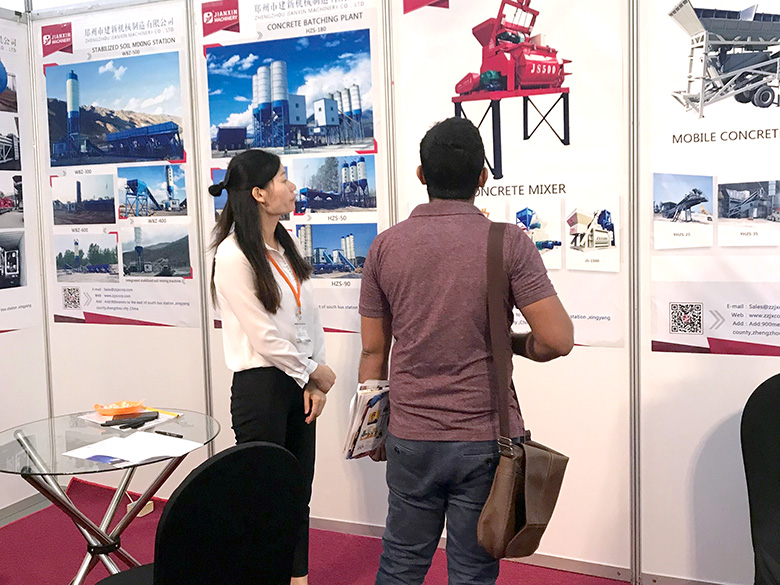 展會上,建新機械研發(fā)的JS混凝土攪拌機、YHZS移動式攪拌站、MPC立軸行星式攪拌機、HZS系列混凝土攪拌站、WBC系列穩(wěn)定土拌合站等產(chǎn)品吸引了絡(luò)繹不絕的觀展者駐足洽談。接待人員不失時機地向來觀展的客戶介紹建新機械的技術(shù)優(yōu)勢、產(chǎn)品特點、售后服務及銷售代理政策,其熱情的講解受到了廣大斯里蘭卡客戶和當?shù)毓こ虣C械人士的關(guān)注,部分客戶當場展開了詳細的商談。